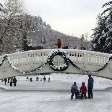 Ice Skate in an atmosphere reminiscent of a scene out of a Currier & Ives Painting on our 3 acre Emerald Lake