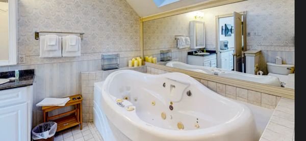 Has 2 gas fireplaces, large jetted tub, enclosed balcony, & a full kitchen. Perfect for couples or small families!